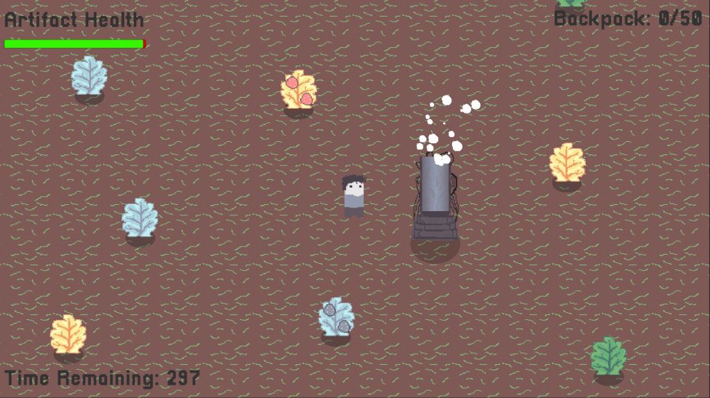 There were only a few things to finish off on the game, most of the mechanics were already in place, I had to create an enemy spawner which spawns enemies at particular time intervals which spawns faster as time goes on. I also had to create the menu, game over screen and UI elements on the game such as the Artifacts health which gradually goes down. It’s really fun bringing everything together into a complete game and seeing it all working. Going through this complete process has also taught me other elements of game development such as animation, sound and things such as tile mapper which I hadn’t used before. This has broadened my knowledge of Unity as a whole which is useful for my career ambitions as I plan to create my own game.